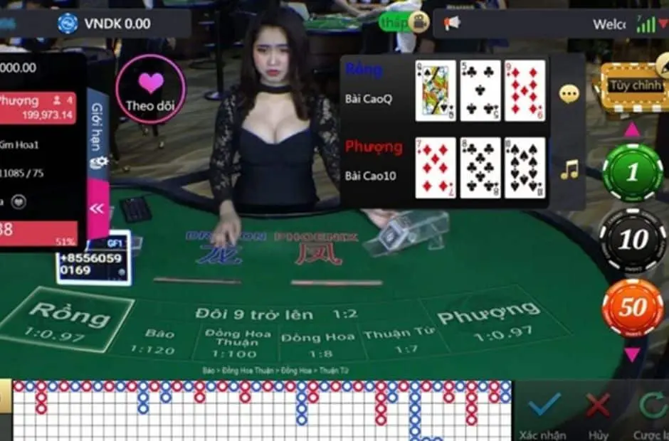 - Đặt cược: Bạn có thể đặt cược vào Long, Phụng, hoặc các cửa phụ với tỷ lệ trả thưởng khác nhau.